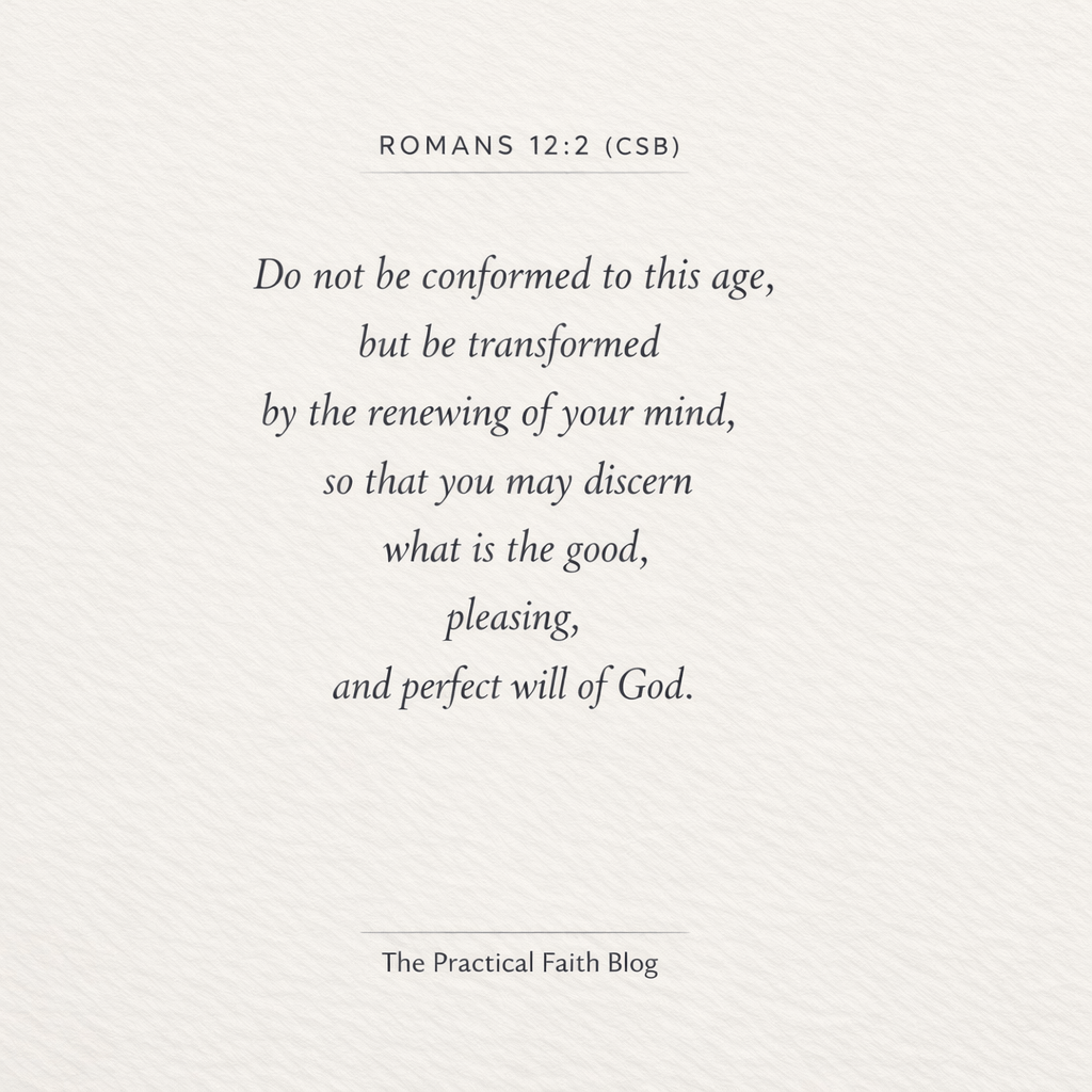 “Do not be conformed to this age, but be transformed by the renewing of your mind, so that you may discern what is the good, pleasing, and perfect will of God.”