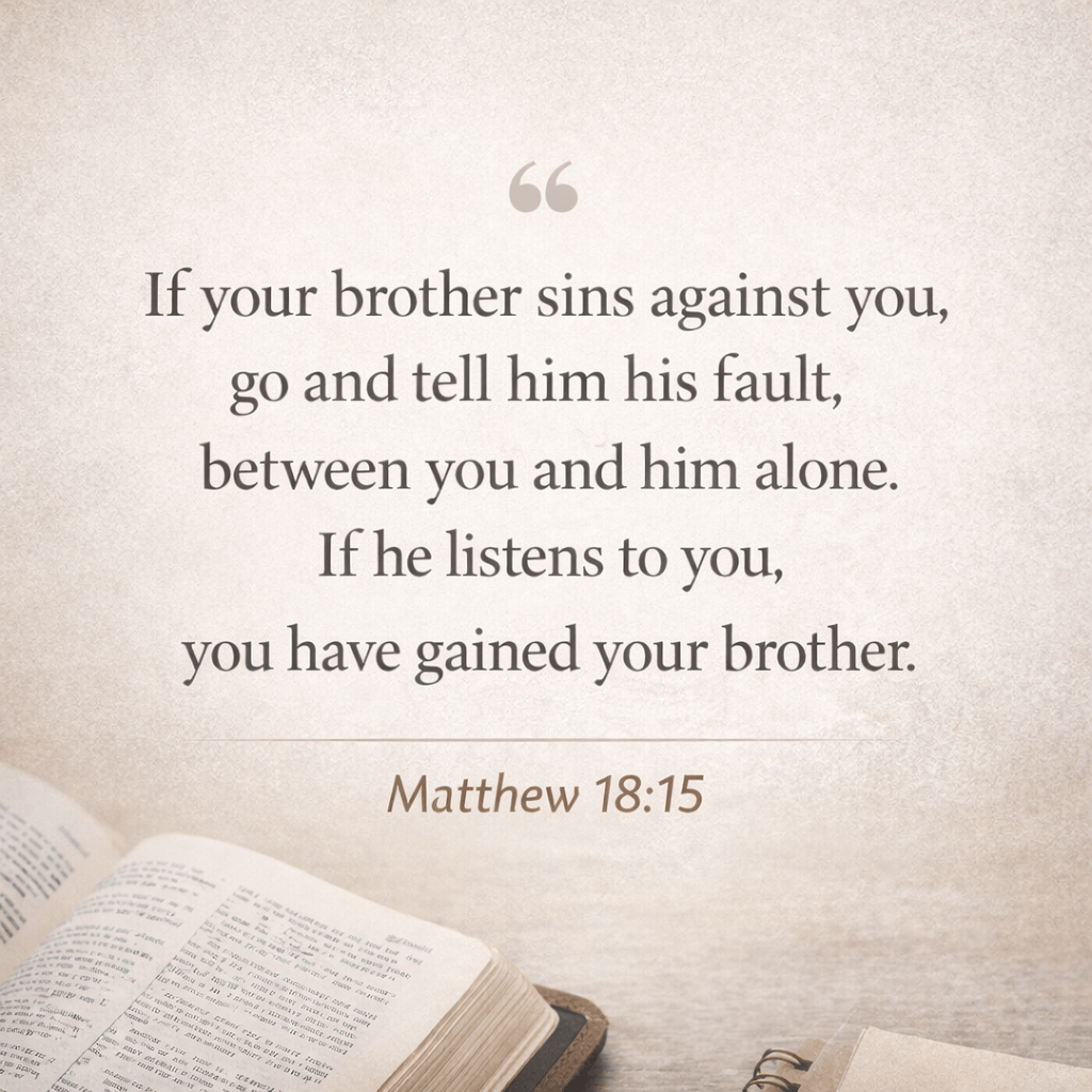 Jesus encourages us to address issues privately before involving others. This protects relationships and prevents unnecessary division. Instead of allowing frustration to grow through assumptions or conversations with others, we seek understanding directly.
